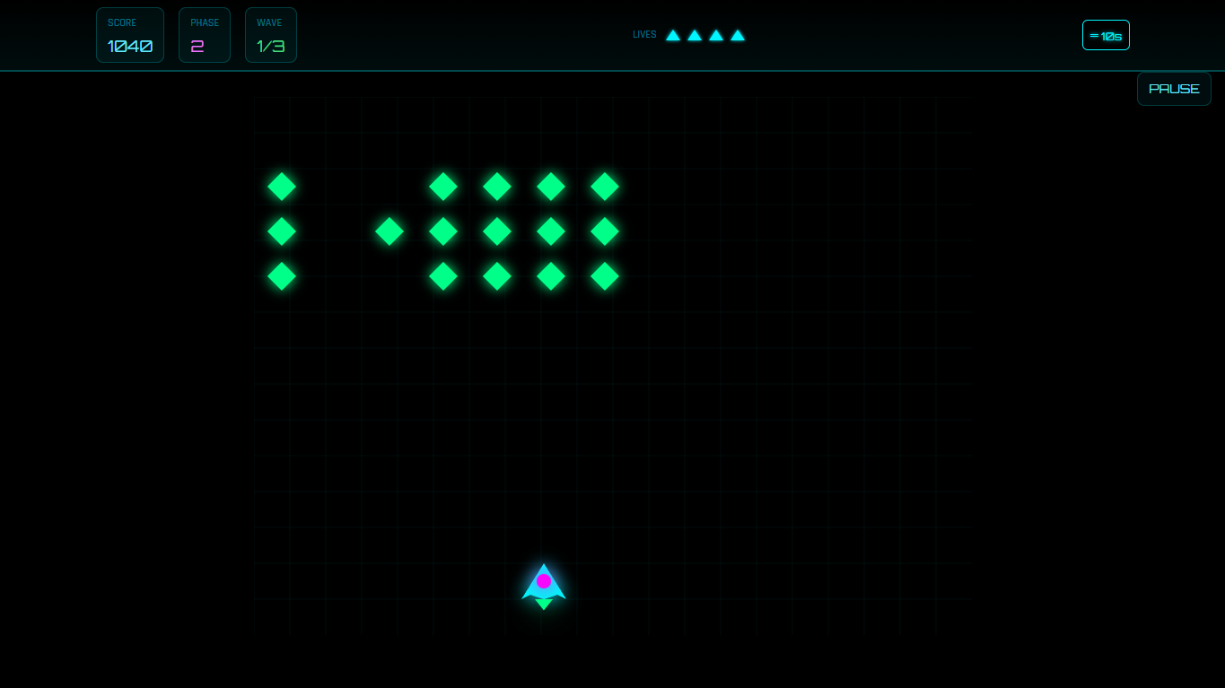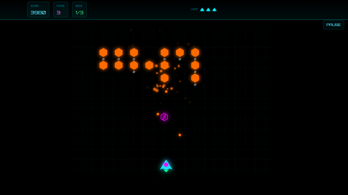 Defend the galaxy against relentless enemy waves across 30 progressive phases, each introducing new challenges, enemy patterns and power-ups. Customize your ship’s colors, master special abilities and survive increasingly intense battles.